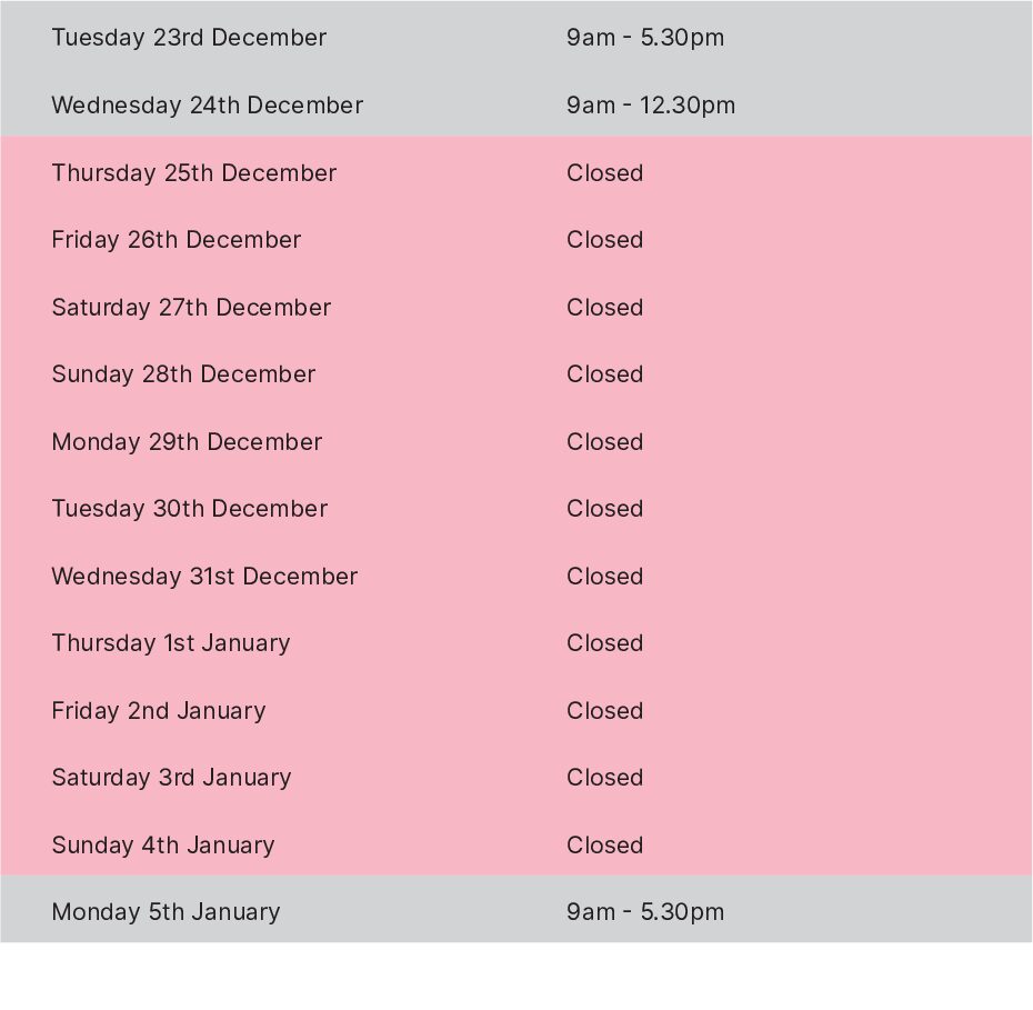 Christmas 2025 Opening Hours.